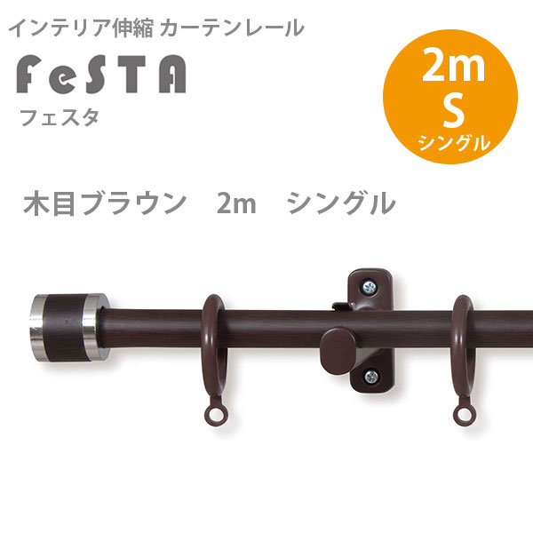 インテリア伸縮カーテンレール フェスタ 木目ブラウン 2mシングルセット (1.2〜2.0mまで伸縮) 1つ 【代引き不可】 【メーカー直送】