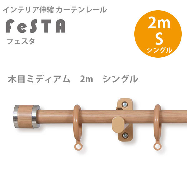 インテリア伸縮カーテンレール フェスタ 木目ミディアム 2mシングルセット (1.2〜2.0mまで伸縮) 1つ 【代引き不可】 【メーカー直送】