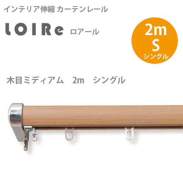 インテリア伸縮カーテンレール ロアール 木目ミディアム 2mシングルセット (1.2〜2.0mまで伸縮) 1つ 【代引き不可】 【メーカー直送】