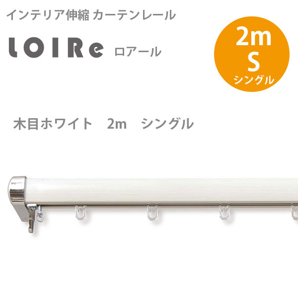 インテリア伸縮カーテンレール ロアール 木目ホワイト 2mシングルセット (1.2〜2.0mまで伸縮) 1つ 【代引き不可】 【メーカー直送】