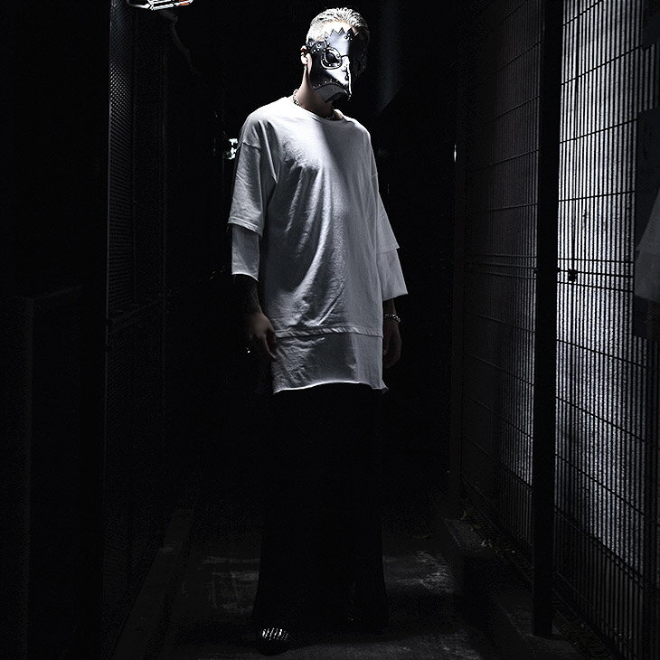 【minority】Fake Layered TEE†Tシャツ ロング丈 半端袖 七分 ロングTシャツ ビッグTシャツ ワイド オーバーサイズ メンズ ファッション モード系 ブランド フェイク レイヤード 綿 ブラック ロック ROCK ロックファッション V系 個性的 個性派 服 新作 Oz オズ