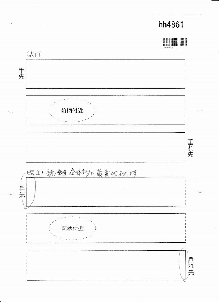 1、裏面、手先、垂れ先、全体的に黄変があります ★