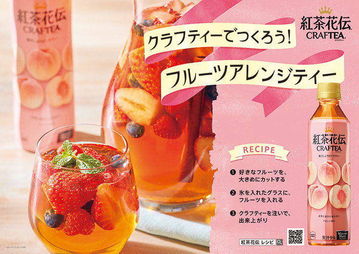 『紅茶花伝 CRAFTEA(クラフティー) 贅沢しぼりピーチティー』がカフェで手作りされるフルーツティーの味わいを目指し、紅茶感をアップ。