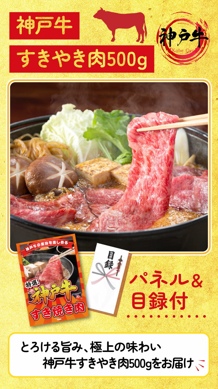 ・神戸牛 すき焼き肉 約500g ■目録景品ご利用の流れ 1、ご注文者様へパネルと目録をお送りいたします。